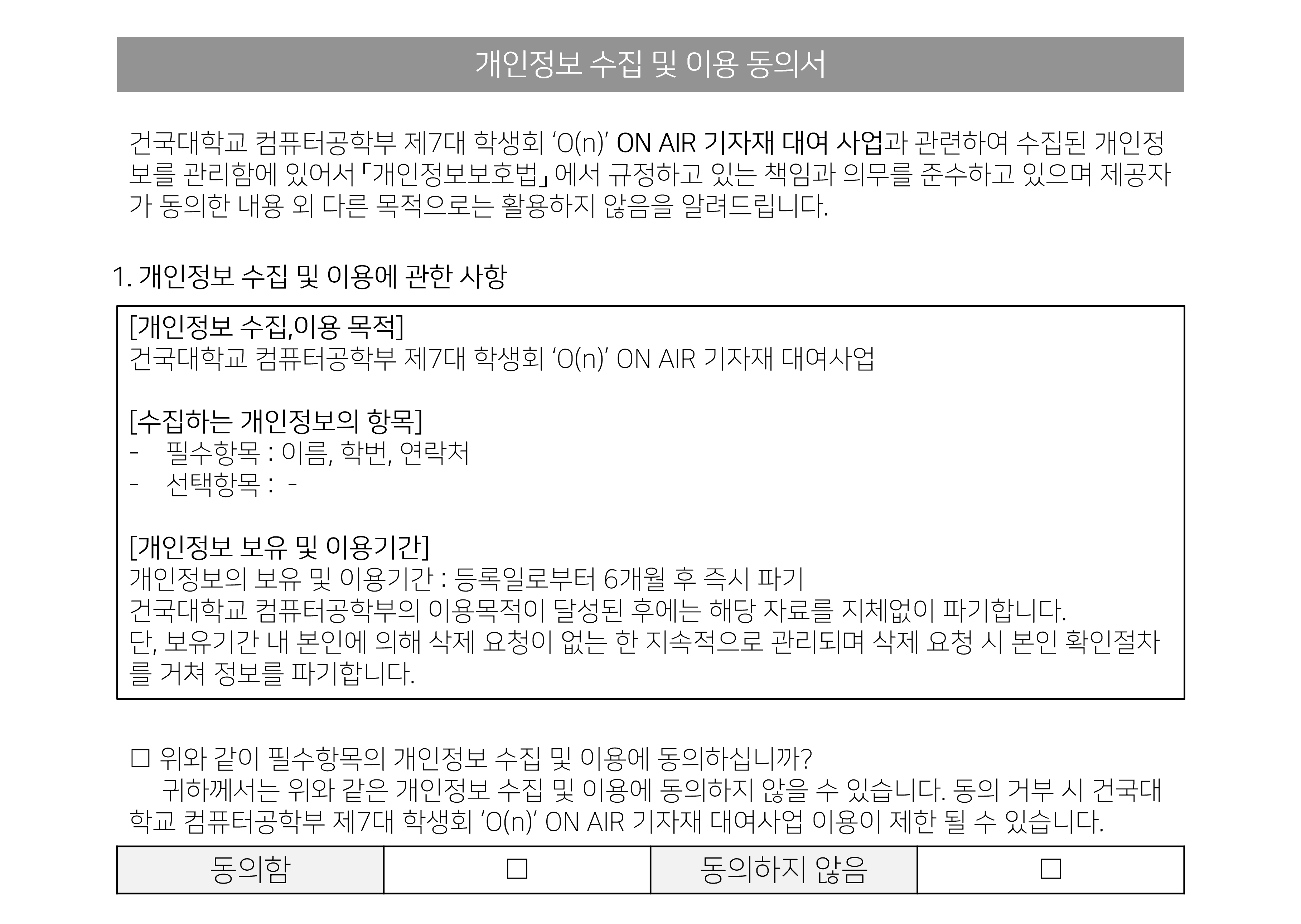 • 컴퓨터공학부 기자재 대여는 학부생들의 실습 및 학업 편의를 위한 복지 사업입니다.